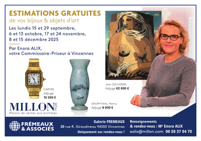 Estimations gratuites par Énora Alix, commissaire-priseur (Millon)
